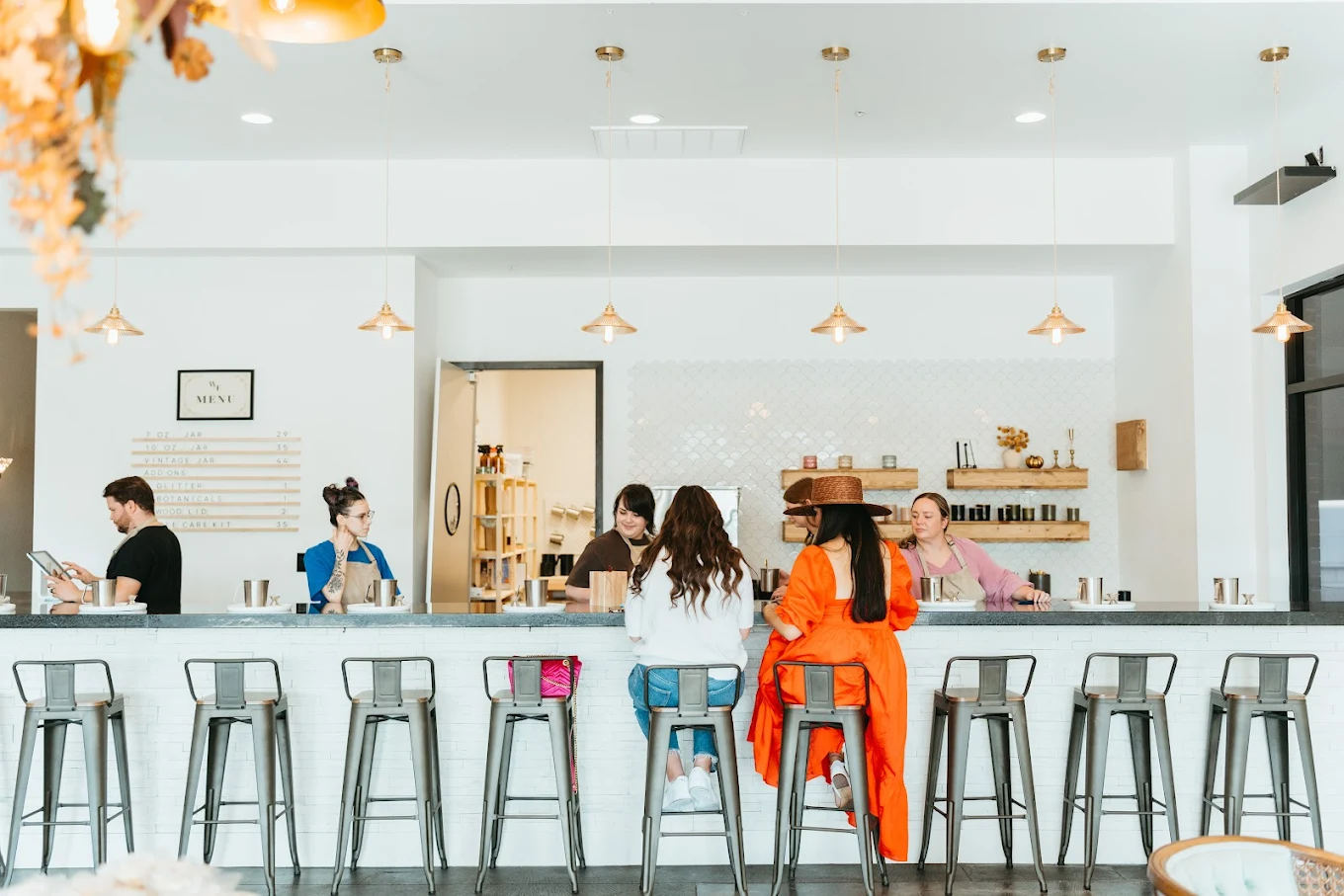 When you arrive, you’ll immediately head to our fragrance wall. Here, you get to smell and write down your favorite scents. We have 75+ fragrance oils to choose from! Then, select your candle vessel and head to the bar.